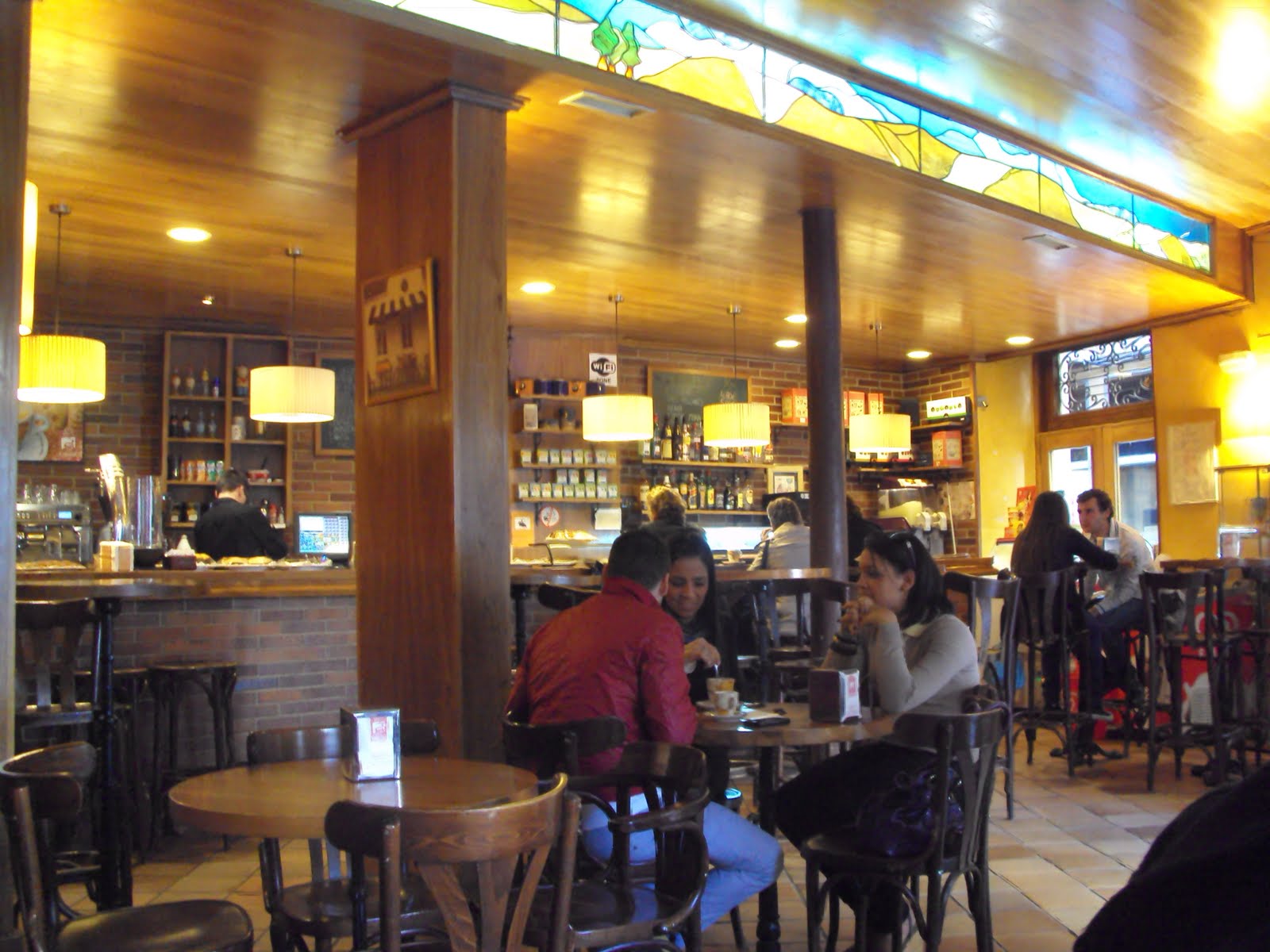 We had a free afternoon today so Megan, Caitlin, and I spent a good deal of it at our favorite café at la colonial plaza. We also sampled some tasty treats at a bakery right by the plaza mayor. We split a strawberry tart and chocolate croissant, both of which were delicious! I have attached some photos of the café we visit nearly everyday as well as a picture of us there today!